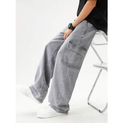 Flirla Women's Casual Loose Straight Leg Maxi Pants With Side Slit, Corduroy Fabric, Autumn/Winter